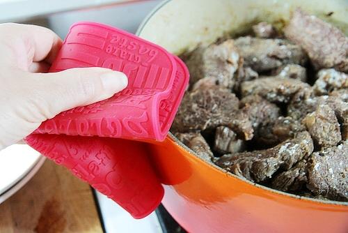 ↓ 待會進烤箱鐵鍋肯定很燙,準備矽膠製革熱用品真的很好用~