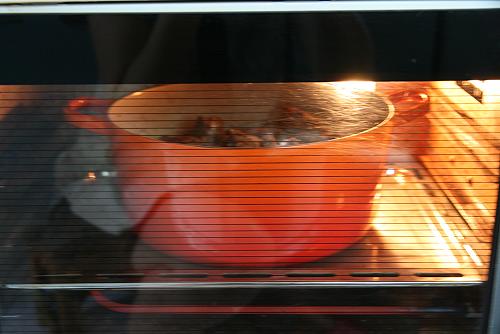 ↓ 這時候要把鐵鍋的蓋子蓋上,烤箱調到160度, 烤的時間需時 3 個鐘頭 !!!