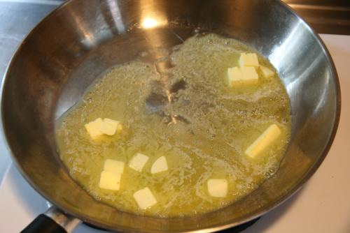 ↓ 烤箱剩下最後半個小時的時候,準備來煎磨菇,取一個不銹鋼鍋放進奶油