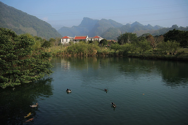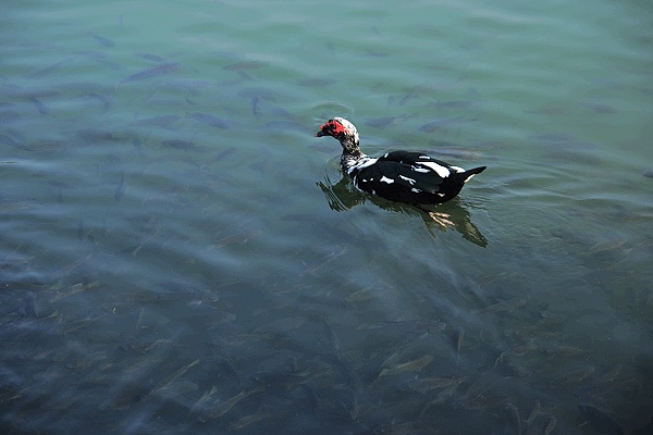 湖裏的鵝。鴨。魚...,遊客們盡興的餵魚們專門的飼料,他們吃的開心,隻隻頭好壯壯,圓滾健康!