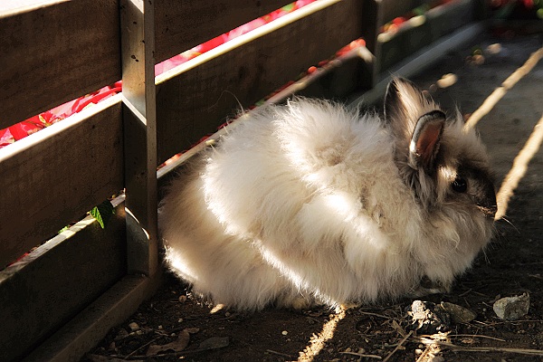 農場養的長毛兔,在我們身邊跑來跑去,去追他的時候就躲起來了,小兔子跑的可快呢。