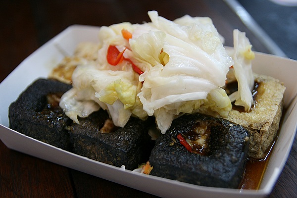 黑皮臭豆腐是中藥泡出來的豆腐,但是.....黑皮臭豆腐吃起來硬了一點,還是原味的比較好吃