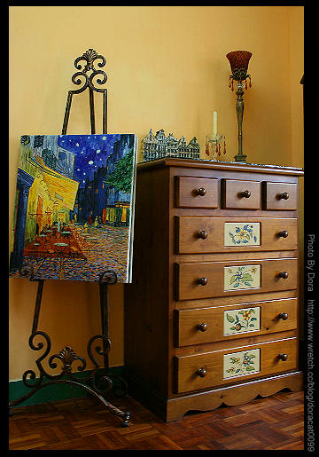 艾瑪的習作 - 臨摹梵谷的夜晚的露天咖啡座 ,記得繪畫老師總是說