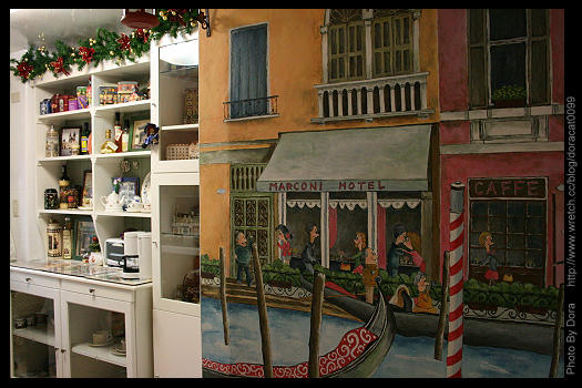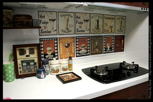 落地璧面的手繪創作,連廚房這一塊角落,都有著艾瑪手繪的歷程